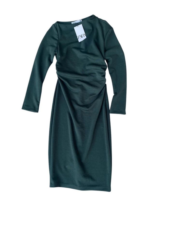 Robe longue cintrée effet drapé vert foncé Zara taille S neuve avec étiquette - photo numéro 1
