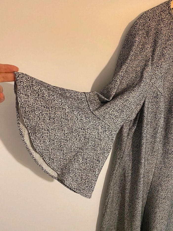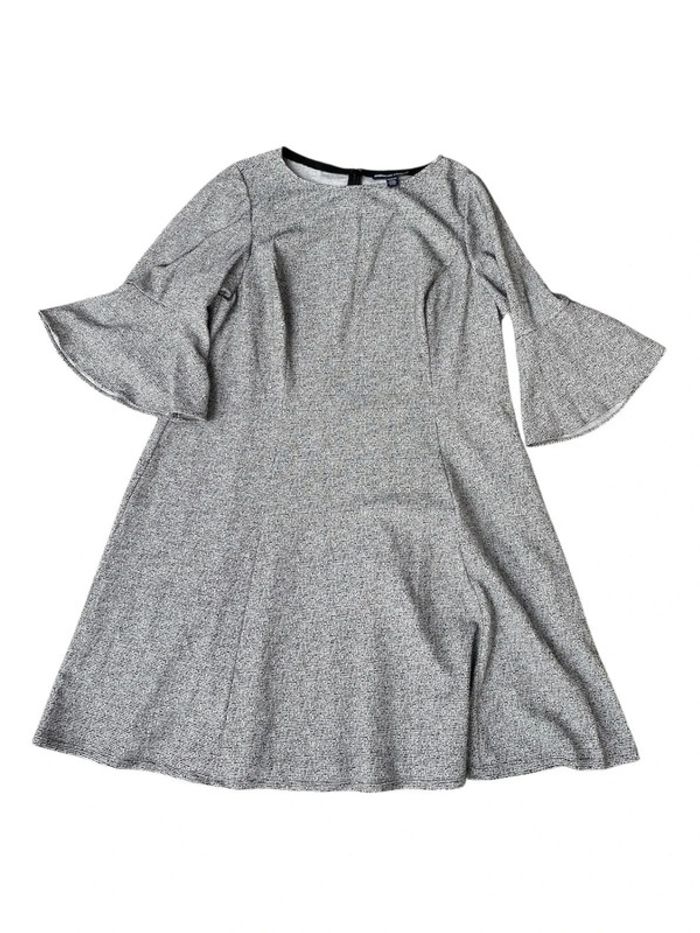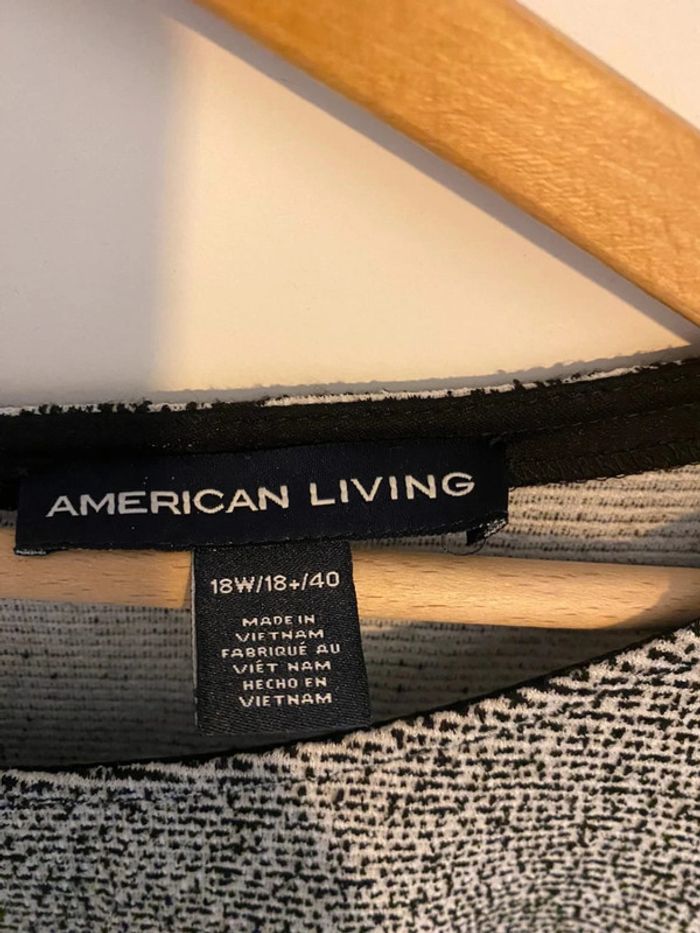 - Élégante robe American Living noire et blanche avec un effet gris subtil et des manches évasées.
