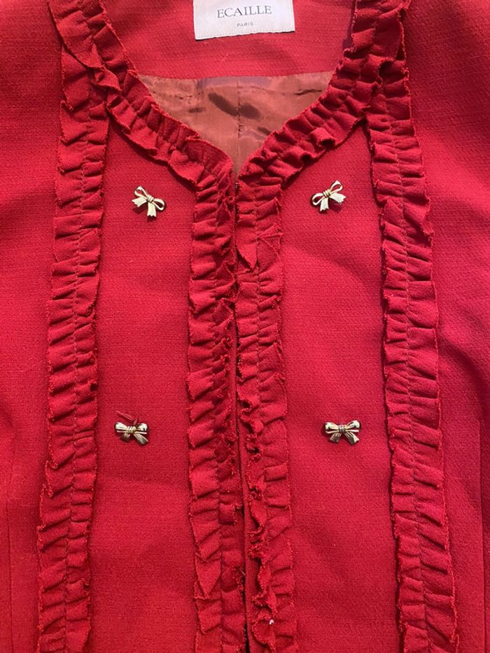 - Elégante veste rouge bordeaux de la marque haut de gamme Ecaille - Fabrication française et façon haut de gamme - Détails dentelés et petits noeuds sur l'avant - Parfaite pour porter par dessus une robe en toutes saisons comme des pantalons - Petite épaulettes pour une silhouette structurée 📏 Taille : 44 🎨 Couleur : Bordeaux assez clair ✅ État : Très bon état, aucun défaut à signaler 🧵 Matière : 62% polyester 34% viscose 4% élasthanne 🚚 Envoi rapide et soigné #emilie87_taille44 #emilie87_Ecaille #emilie87_vestes #Ecaille #Veste #Cérémonie #Mariage #Bapteme #Soirée #VesteElegante #MarqueFrançaise #MadeInFrance #Bordeaux #Noeuds #Elegance