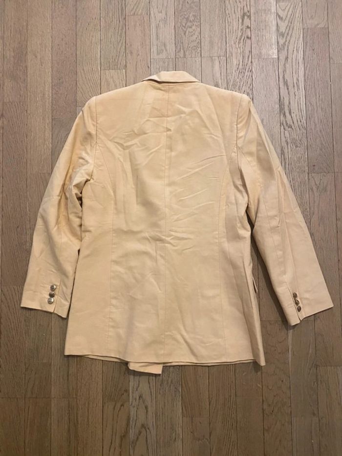 - Coupe classique et structurée, parfaite pour un look chic et sophistiqué - Double boutonnage avec magnifiques boutons dorés, apportant une touche élégante - Doublé pour un tombé impeccable et un confort optimal - Polyvalent : idéal pour un style casual avec un jean ou plus habillé avec un pantalon tailleur 📏 Taille : 40 ✅ État : excellent état, aucun défaut notable 🎨 Couleur : jaune avec boutons dorés - la première photo a été prise dehors à la lumière naturelle, la couleur est donc conforme à la couleur naturelle 🧵 Composition : 60% polyester 40% viscose 🚚 Envoi rapide et soigné 💖 Pensez à regarder mes autres articles ! #BlazerVintage #ÉléganceClassique #ModeChic #SecondeMain #LookIntemporel