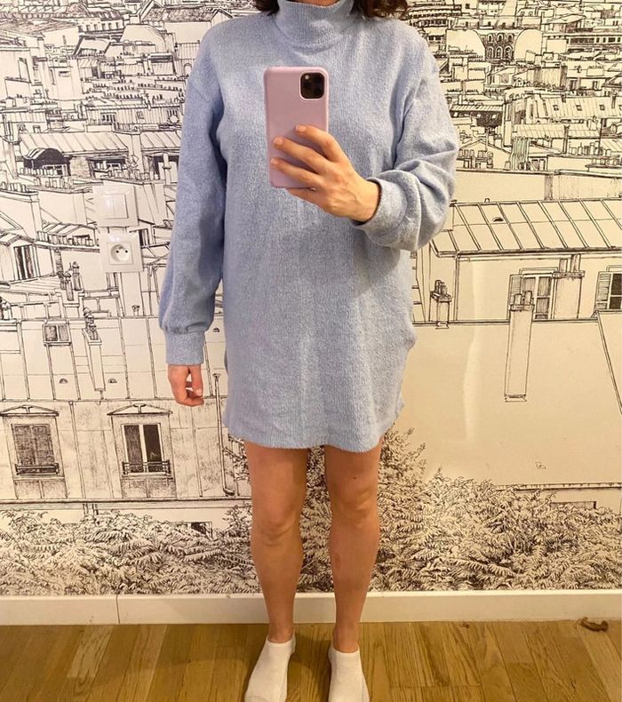 - Robe pull beu ciel (couleur tendance de cet hiver) - Robe assez courte (je fais 1m72) qui peut aussi être portée en tunique - A porter avec un collant ou un legging 📐 Taille : L (indiqué sur l'étiquette de composition) ✅ État : excellent état, elle n'a jamais été portée - l'étiquette de marque a été coupée mais on voit la marque sur l'étiquette de composition 🎨 Couleur : bleu clair - la première photo a été prise à l'extérieur, les autres à l'intérieur. 🧵 Matière : polyester, viscose et élasthanne - mmatière douce et texturée 📏 Mesures : - Largeur aux épaules : 56 cm (faites pour être un peu tombantes) - Longueur (du bas du col au bas de la robe) : 78 cm 🚚 Livraison : rapide en Chronopost et Mondial Relay, j'y vais presque tous les jours - VintedGo est un peu plus loin de chez moi donc je n'y vais pas tous les jours 👌 Abonnez-vous : je publie de nouvelles pièces de belles marques pour les hommes, femmes et enfants plusieurs fois par semaine. #bershka #robepull #bleuciel #robedhiver #hiver #tailleL #sizeL #skyblue #dress #winterdress #femmeL #womenL #winter