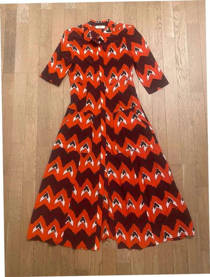 Magnifique robe longue Ba&sh, fluide et légère, 100% soie. Modèle painty bordeaux lady dress très versatile. 📐 Taille : 0 (équivalent à un 34 FR). ✅ État : Excellent état, soigneusement entretenue. 🎨 Couleur : rouge et bordeaux rehaussé de motifs géométriques noirs et blancs. La première photo a été prise à l'extérieur, les autres à l'intérieur. 🚚 Livraison : Envoi rapide et soigné. 👌 Abonnez-vous : Je publie tous les jours des pièces homme, femme, enfant de belles marques ! #BaAndSh #RobeEnSoie #ModeÉlégante #ChicEtIntemporel #SecondMain Italiano : Magnifico abito lungo Ba&sh in 100% seta, taglia 0 (34 FR). Rosso con motivo geometrico nero e bianco. #BaAndSh #AbitoElegante English : Stunning long silk dress by Ba&sh, size 0 (34 FR). Red with black and white geometric pattern. #BaAndSh #SilkDress Español : Magnífico vestido largo de Ba&sh, 100% seda, talla 0 (34 FR). Rojo con estampado geométrico en negro y blanco. #BaAndSh #VestidoDeSeda Deutsch : Wunderschönes langes Seidenkleid von Ba&sh, Größe 0 (34 FR). Rot mit geometrischem Muster in Schwarz und Weiß. #BaAndSh #SeidenKleid Português : Vestido longo maravilhoso da Ba&sh, 100% seda, tamanho 0 (34 FR). Vermelho com padrão geométrico preto e branco. #BaAndSh #VestidoDeSeda Nederlands : Prachtige lange jurk van Ba&sh, 100% zijde, maat 0 (34 FR). Rood met zwart-wit geometrisch patroon. #BaAndSh #ZijdenJurk