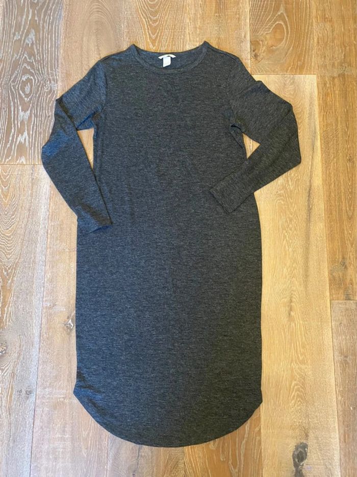 Anglais : long dress, H&M, grey, basic, size 40.