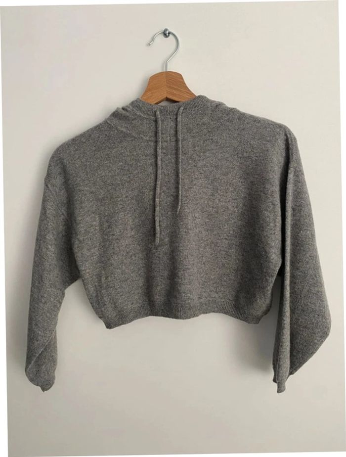 Pull court en cachemire gris à capuche Loulou Studio 8 ans - photo numéro 3