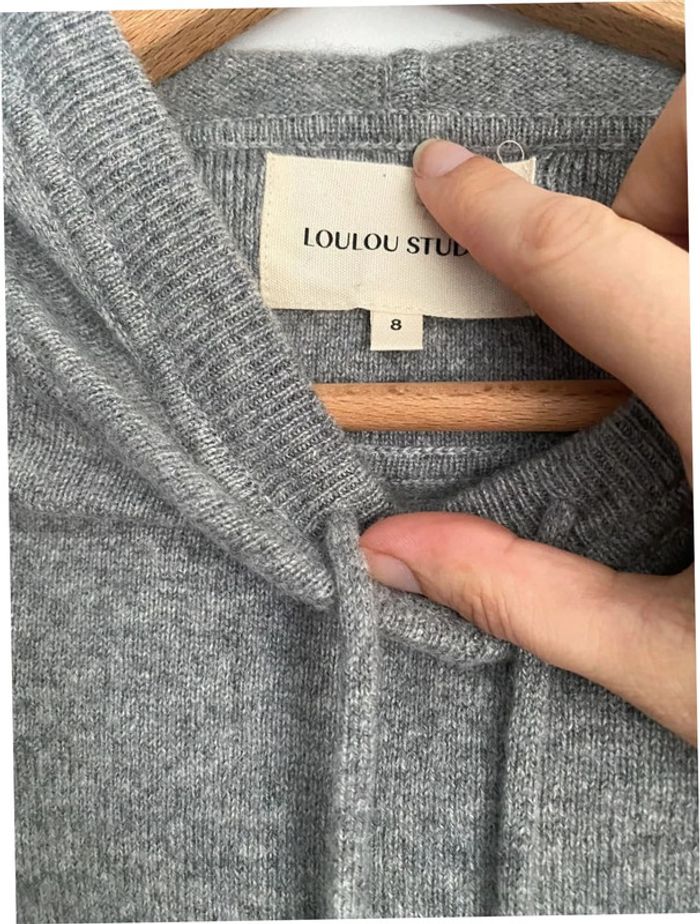 Pull court en cachemire gris à capuche Loulou Studio 8 ans - photo numéro 5