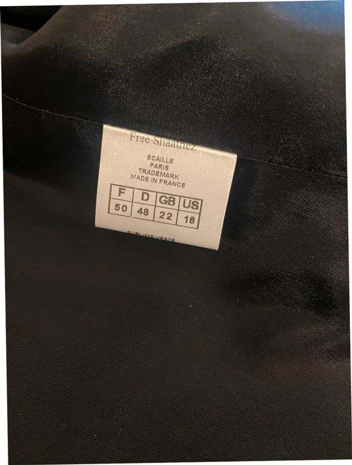 Sublime et intemporelle, cette veste de la marque Écaille est une pièce incontournable pour une garde-robe élégante. Confectionnée dans un tissu noir à 62% laine, elle offre une belle structure et une allure raffinée. Les détails blancs, agrémentés de délicates perles, ajoutent une touche de sophistication qui rehausse le design. 📐 Taille : 50 - Largeur aux épaules : 46 cm - Largeur aux aisselles : 56 cm - Longueur : 60 cm ✅ État : Excellent état (peu portée, aucun défaut visible). 🎨 Couleur : Noir avec détails blancs. La première photo a été prise à l’extérieur, les autres à l’intérieur. 🚚 Livraison : Rapide et soignée. Je dépose régulièrement des colis, alors n’hésitez pas à poser vos questions. 👌 Abonnez-vous : Je publie fréquemment des vêtements et accessoires élégants de marques haut de gamme pour femmes et hommes. #VesteNoire #ModeÉlégante #Ecaille #DétailsSophistiqués #TissuEnLaine #SecondemainChic #ModeResponsable #LookRaffiné #StyleÉlégant English : #BlackJacket #ElegantStyle #Ecaille #WoolBlend #SophisticatedDetails #SustainableFashion #ChicFrenchStyle #RefinedLook #LuxuryPreloved Italiano : #GiaccaNera #StileElegante #Ecaille #MistoLana #DettagliSofisticati #ModaSostenibile #ChicFrancese #LookRaffinato Deutsch : #SchwarzeJacke #EleganterStil #Ecaille #Wollmischung #RaffinierteDetails #NachhaltigeMode #FranzösischerChic #RaffinierterLook Español : #ChaquetaNegra #EstiloElegante #Ecaille #MezclaDeLana #DetallesSofisticados #ModaSostenible #EstiloFrancésChic #LookRefinado Nederlands : #ZwarteJas #EleganteStijl #Ecaille #WolMengsel #VerfijndeDetails #DuurzameMode #FranseChic #VerfijndeLook Português : #CasacoPreto #EstiloElegante #Ecaille #MisturaDeLã #DetalhesSofisticados #ModaSustentável #EstiloChiqueFrancês #VisualRefinado