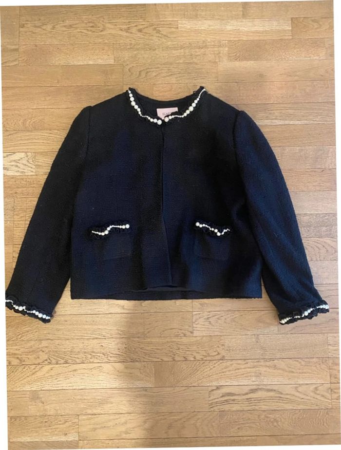 Très belle veste noire ornée de perles Ecaille Paris taille 50 - photo numéro 1