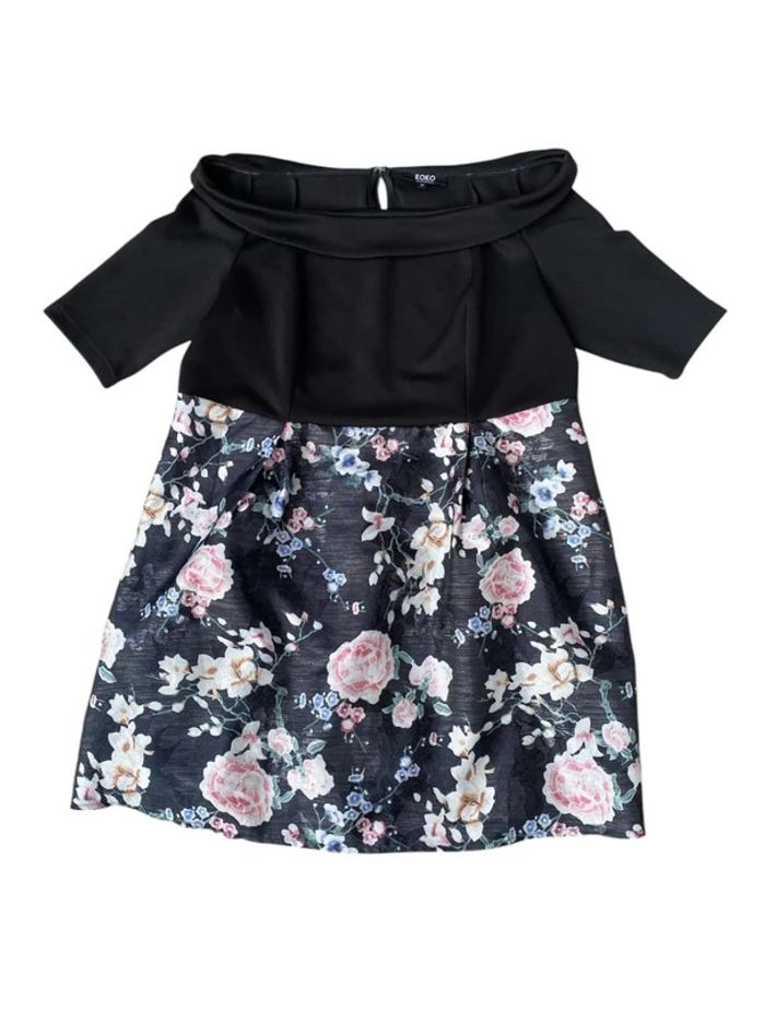 Apportez une touche de féminité et de style à votre dressing avec cette superbe robe Koko. Avec son haut noir élégant et son bas à motif fleuri, elle est parfaite pour une occasion spéciale ou un look sophistiqué au quotidien. 📐 Taille : 24 UK (équivalent FR 52) - Largeur du col : 48 cm - Largeur aux aisselles : 62 cm - Longueur : 85 cm ✅ État : Excellent état, portée une seule fois. 🎨 Couleurs : Noir en haut, motif fleuri coloré en bas. La première photo a été prise à l'extérieur, les autres à l'intérieur. 🚚 Livraison : Envoi rapide et soigné. 👌 Abonnez-vous : Je publie tous les jours des pièces homme, femme et enfant de belles marques ! #RobeKoko #GrandeTaille #ModeFéminine #LookChic #SecondMain Italiano : Aggiungi un tocco di femminilità al tuo guardaroba con questo abito Koko, nero in alto e floreale in basso. In ottime condizioni, usato una sola volta. #AbitoKoko #TagliaForte #ModaElegante English : Add a touch of elegance to your wardrobe with this Koko dress, black top and floral skirt. Excellent condition, worn only once. #KokoDress #PlusSizeFashion #ChicStyle Español : Añade un toque de elegancia a tu armario con este vestido Koko, negro en la parte superior y con flores en la parte inferior. En excelente estado, usado solo una vez. #VestidoKoko #TallaGrande #EstiloElegante Deutsch : Bringen Sie Eleganz in Ihre Garderobe mit diesem Koko-Kleid, schwarzes Oberteil und geblümter Rock. Hervorragender Zustand, nur einmal getragen. #KokoKleid #GroßeGrößen #EleganterStil Português : Adicione elegância ao seu guarda-roupa com este vestido Koko, preto na parte superior e floral na saia. Excelente estado, usado apenas uma vez. #VestidoKoko #TamanhoGrande #EstiloElegante Nederlands : Voeg elegantie toe aan je garderobe met deze Koko-jurk, zwart bovenstuk en bloemenrok. Uitstekende staat, slechts één keer gedragen. #KokoJurk #GroteMaat #ChiqueStijl