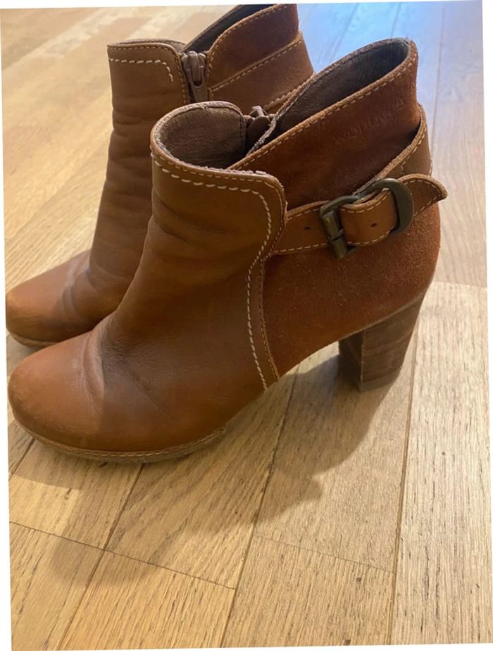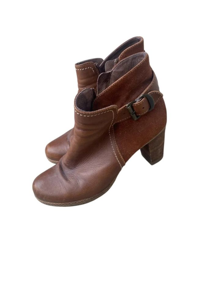 Bottines à talon marron en cuir taille 37 - photo numéro 1