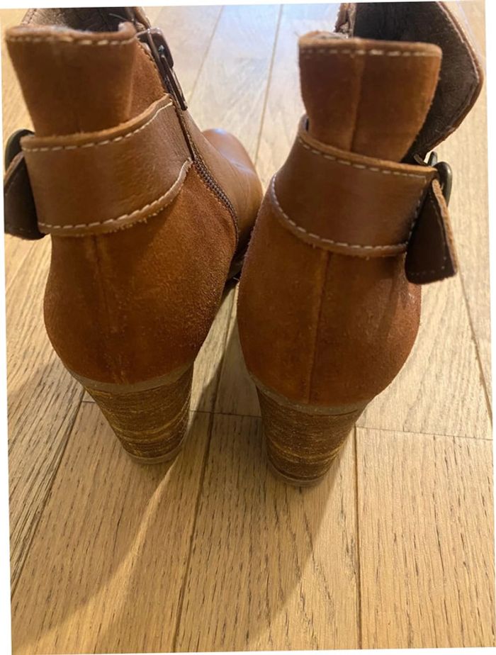 Bottines à talon marron en cuir taille 37 - photo numéro 4