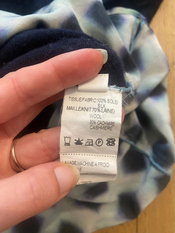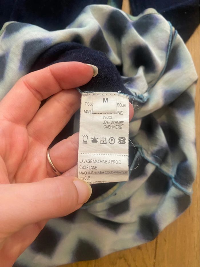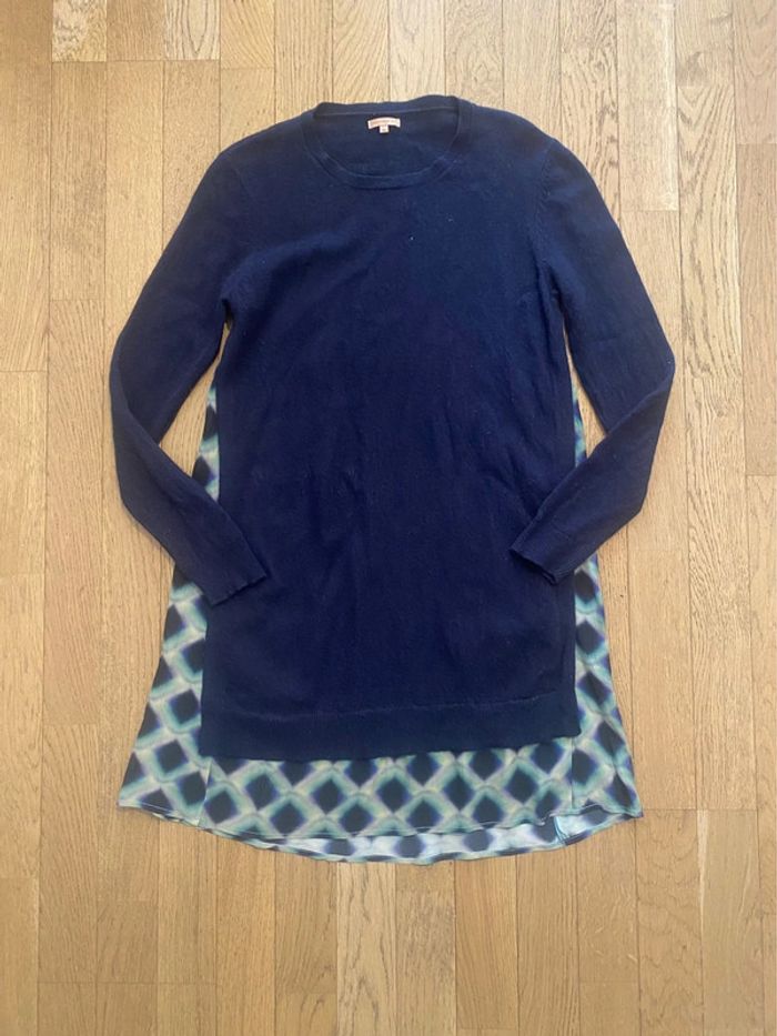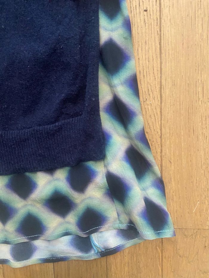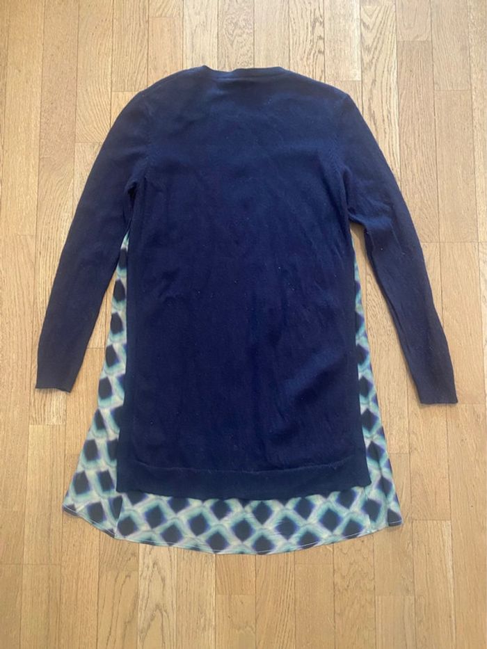 - Coupe fluide et féminine, parfaite pour l’automne/hiver - Empiècements en soie au motif vert clair qui ajoutent une touche d’originalité - Matières nobles et agréable à porter 📏 Taille : M ✅ État : Très bon état 🎨 Couleur : Bleu marine avec détails vert clair 🧵 Composition : 70% laine, 30% cachemire – Empiècements : 100% soie 🚚 Envoi rapide et soigné 💖 N'oubliez pas de jeter un œil à mes autres articles ! #Bensimon #RobeChic #CachemireLover #SecondeMain #ModeResponsable #LookÉlégant