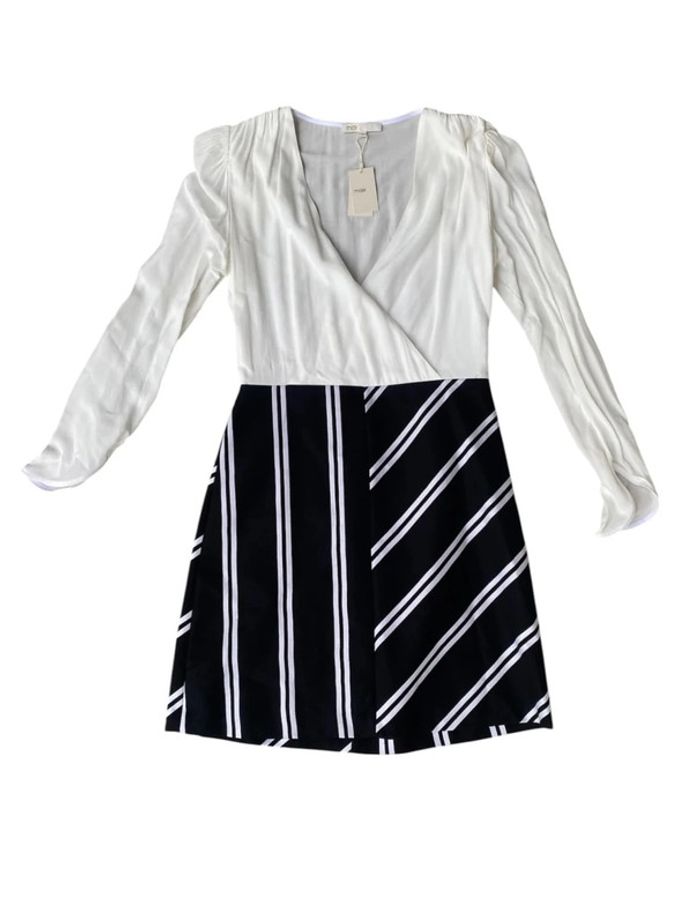 - Haut à manches longues blanc en viscose, fluide et confortable - Jupe noire avec quelques rayures blanches, mélange de matières pour une belle tenue - Fermeture éclair sur le côté, pour un ajustement parfait à la silhouette 📏 Taille : 2 (équivalent 38 FR) ✅ État : Neuve avec étiquette 🎨 Couleur : Haut blanc, jupe noire à rayures blanches 🧵 Composition : Haut 100% viscose / Jupe 80% viscose, 10% polyester, 10% lin 👗 Marque : Maje 🚚 Envoi rapide et soigné 💖 Pensez à regarder mes autres articles ! #Maje #RobeChic #ModeTendance #SecondeMain #Élégance