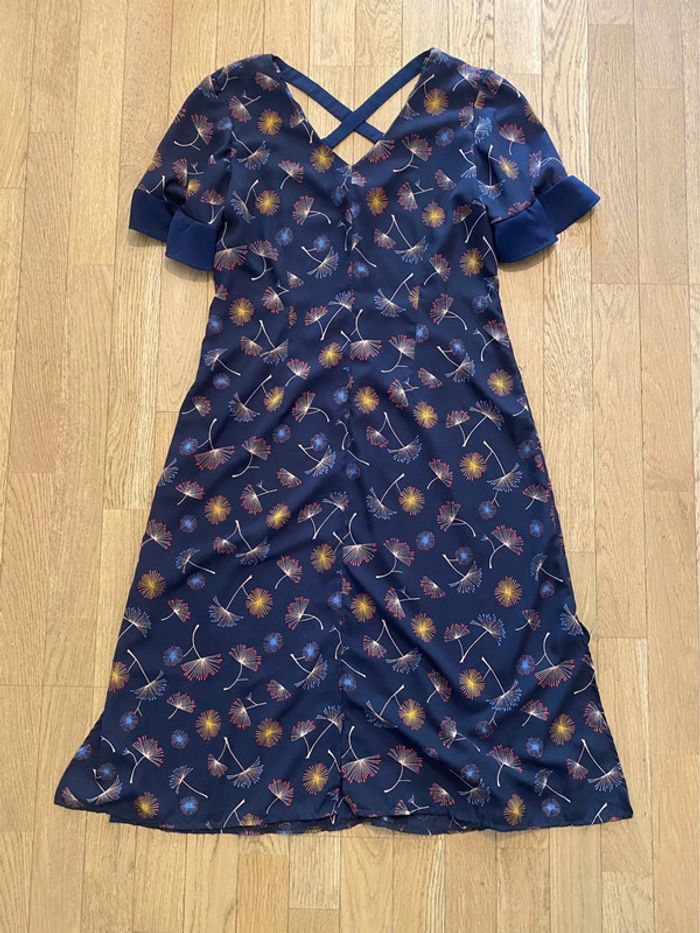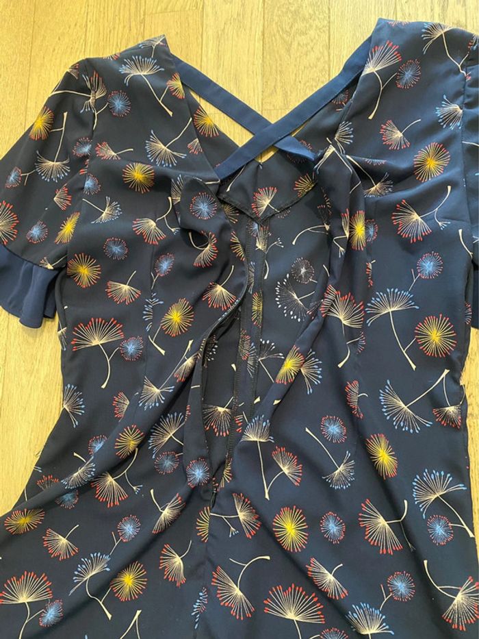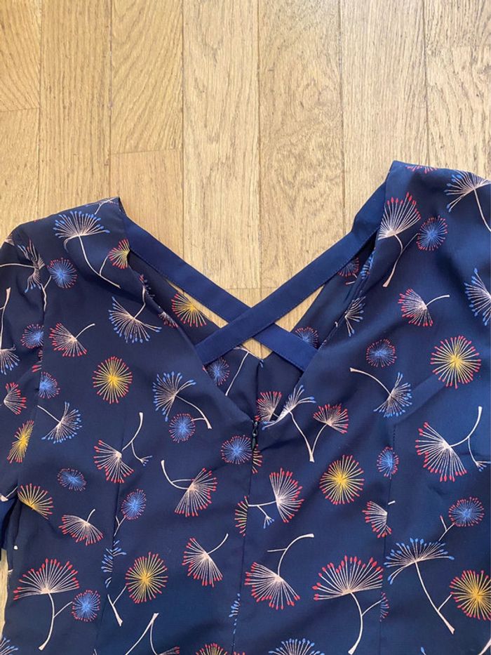 Robe fluide à manches courtes bleu marine motif floral Olivier Battino - photo numéro 8