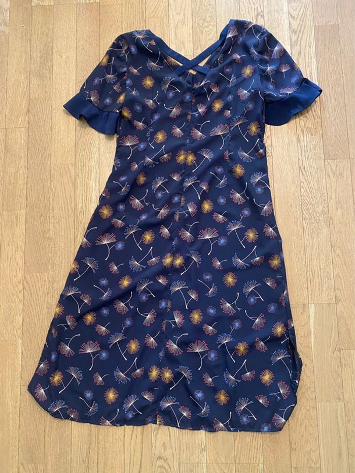 Robe fluide à manches courtes bleu marine motif floral Olivier Battino - photo numéro 1