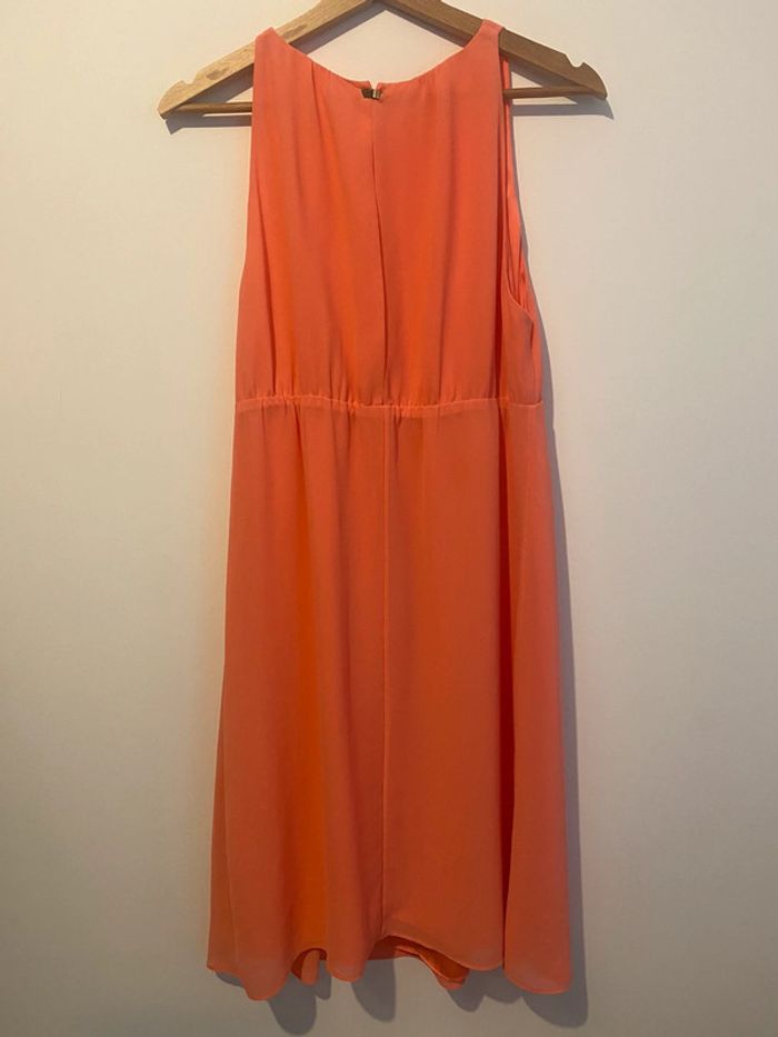 Robe de grossesse couleur corail Elle a été portée mais reste en très bon état À porter seule l’été ou avec des collants en mi-saison Taille normalement, d’habitude je fais plutôt du S en robe mais ça laisse de l’espace