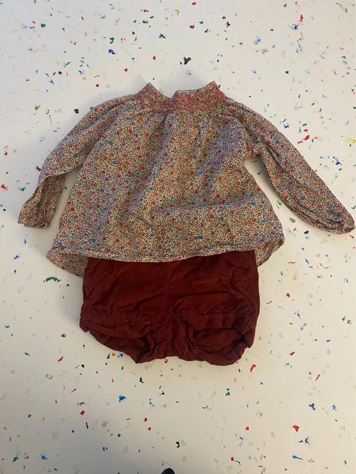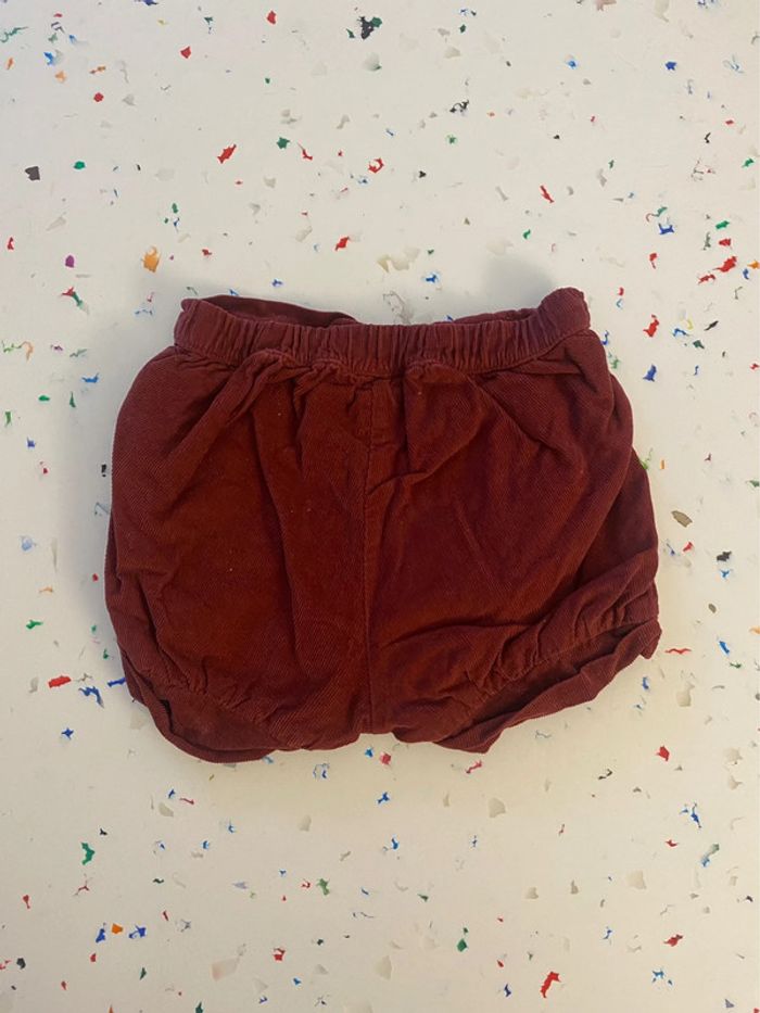 Joli bloomer / short en velours bordeaux 18 mois de la marque Cyrillus. A porter avec des collants. Il fait partie d’un set avec une blouse aux couleurs de l’automne que je vends également.