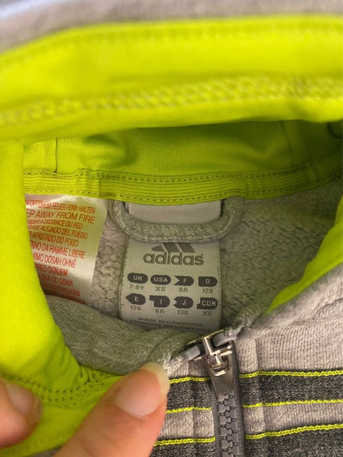 Sweat zippé à capuche gris Adidas 8 ans - photo numéro 7