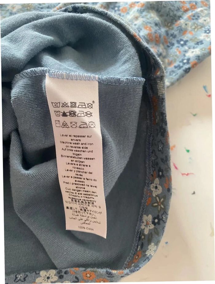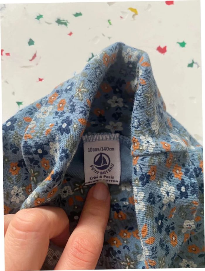 Sous pull bleu motif fleuri style années 1970 Petit Bateau 10 ans - photo numéro 4