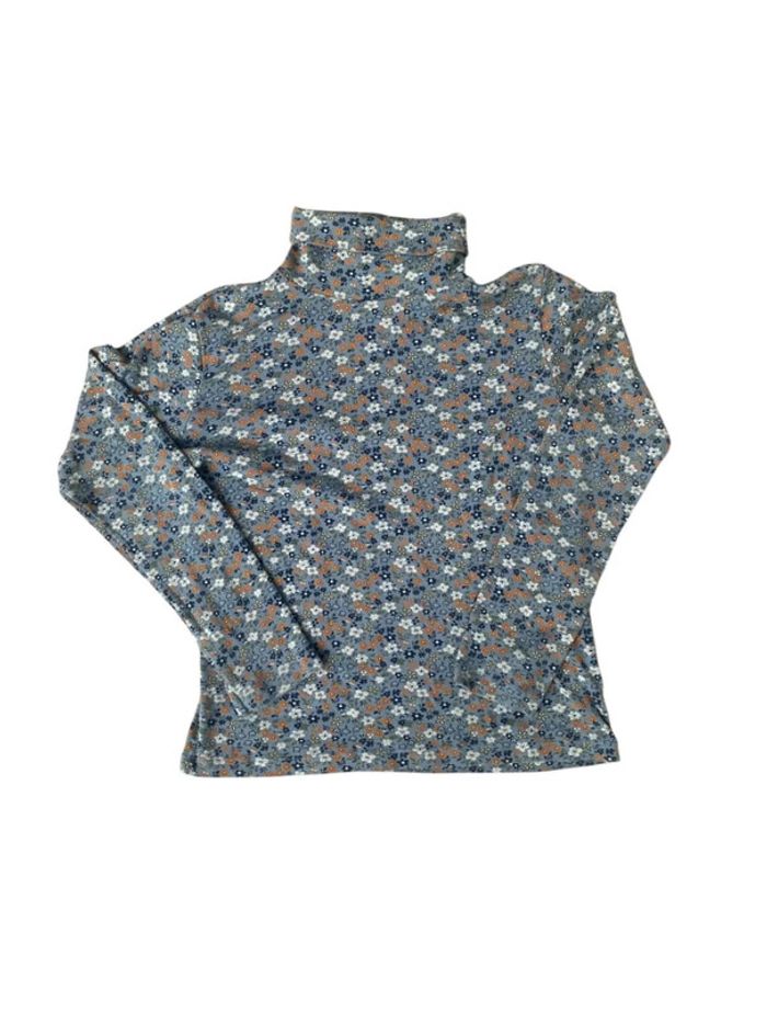 Sous pull bleu motif fleuri style années 1970 Petit Bateau 10 ans
