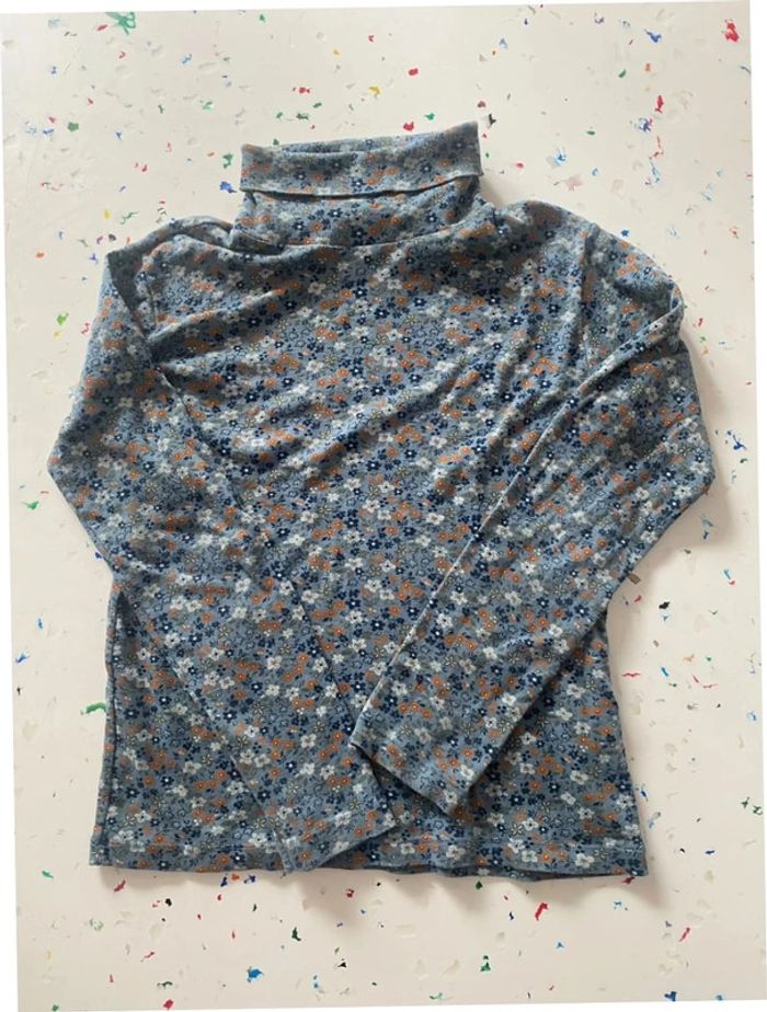Sous pull bleu motif fleuri style années 1970 Petit Bateau 10 ans - photo numéro 1