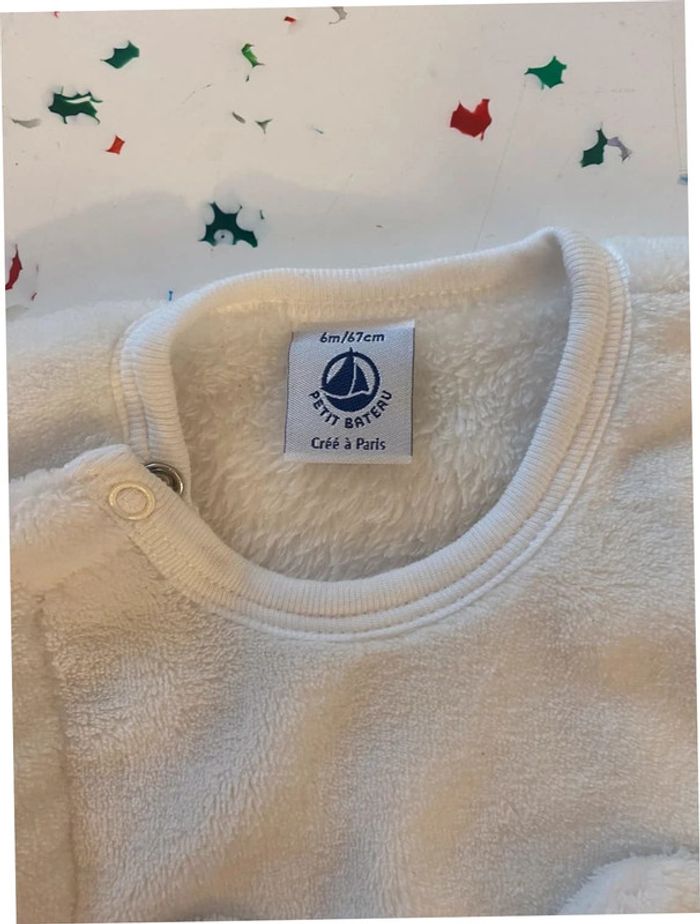 Pyjama très chaud en fausse fourrure blanche et tête d’ourson Petit Bateau 6 mois - photo numéro 3