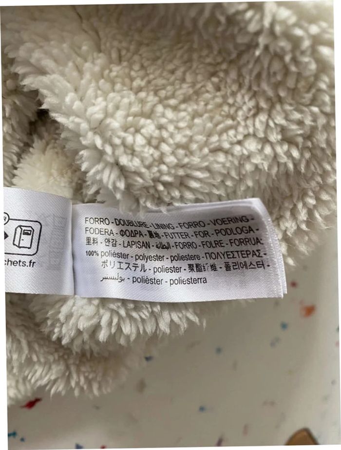 🎨 Couleur : carreaux bleu marine, marron et beige, l'intérieur et en fausse fourrure blanc cassé - la première photo a té prise à l'extérieur, les autres à l'intérieur