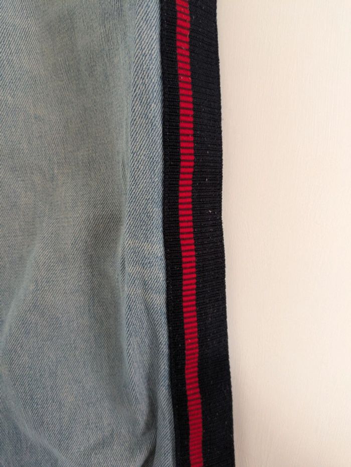 Magnifique jean Coupe boot cut Bandes contrastantes sur les côtés en rouge et noire 100 % coton Super original et confortable #jeans #claudiepierlot