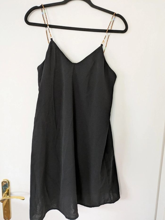 Magnifique petite robe noire Arrivé au dessus du genou Matière assez fluide et légère avec une doublure donc non transparente Jolies bretelles fines en merles amovibles #petitesrobesnoires #littleboys #bretellesbijoux #summervibes