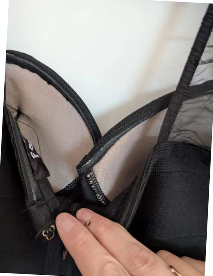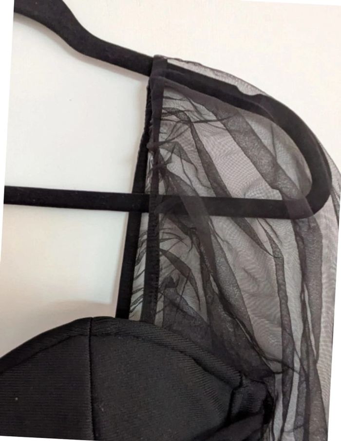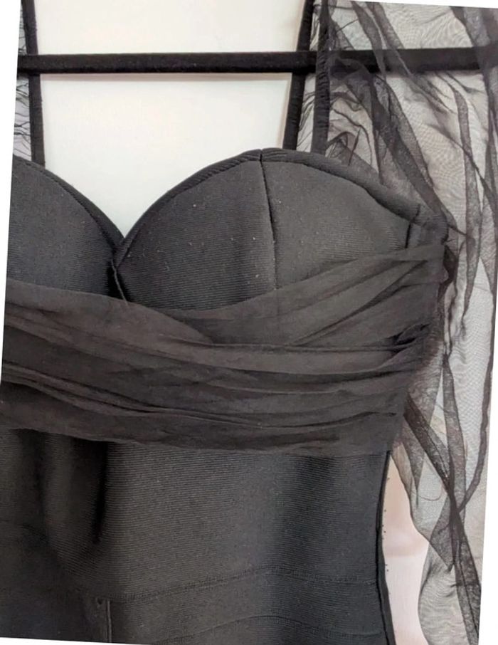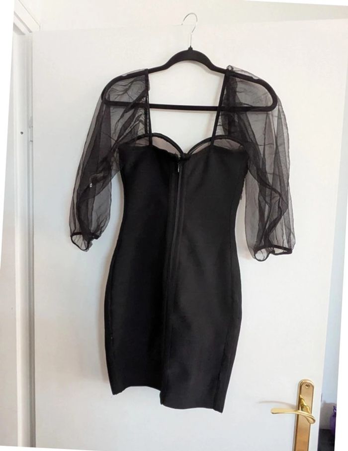 Magnifique robe de soirée Coupe moulante, près du corps Des manches vaporeuses en voile transparente qui donne toute son originalité a la robe Fermeture éclair dans le dos En taille M #blackdress #f&p