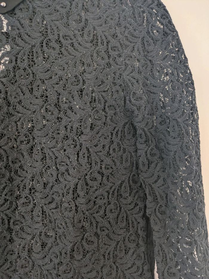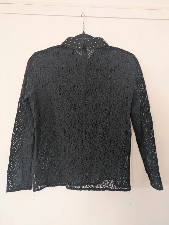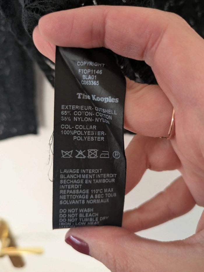 Magnifique blouse En dentelle/broderie transparentes sur toute la blouse Clous sur le col et fermeture éclair dans le dos #thekooplesfemme #thekooplesaddict #thekooples #blacktop #broderie #lace