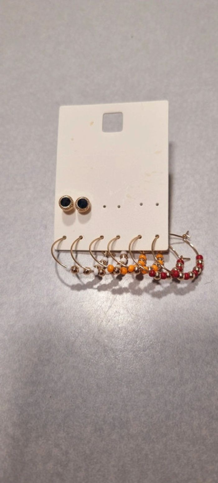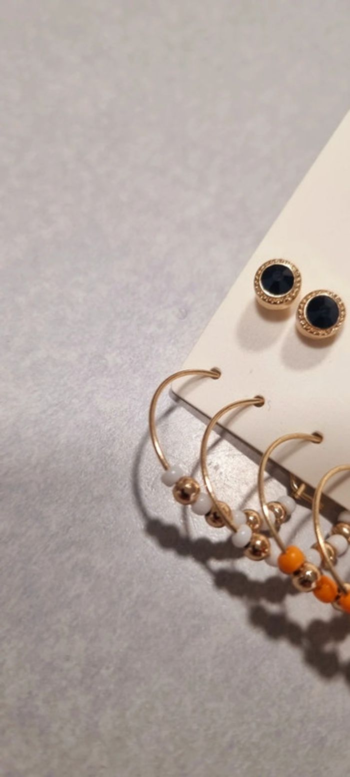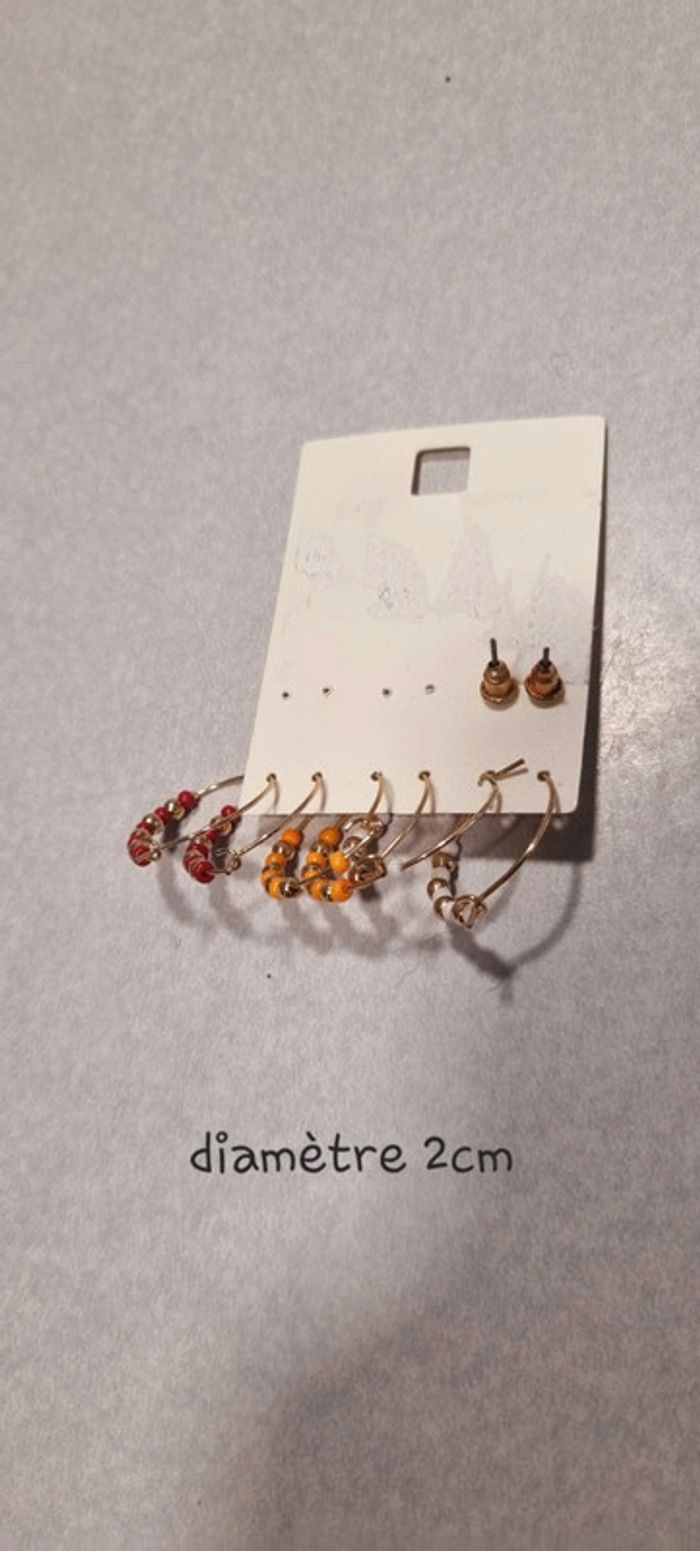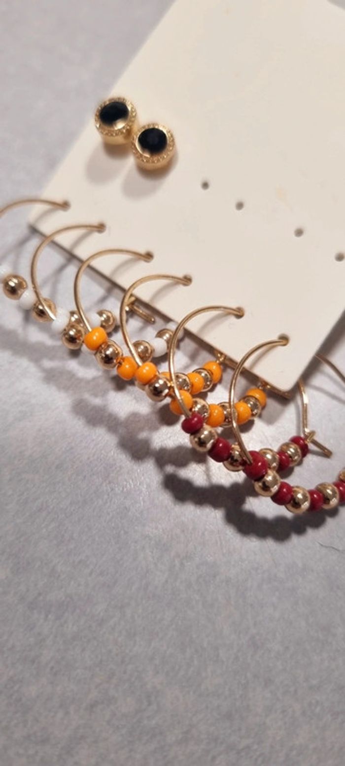 Lot de 4 paires de boucles d'oreilles créoles perle bordeaux orange blanche neuve - photo numéro 3