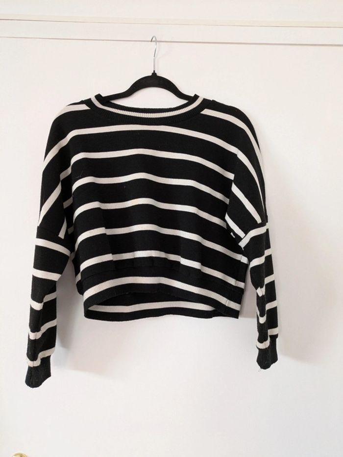 Magnifique pull court (crop) Matière très douce et légère Rayures horizontales blanches #pullcourtfemme