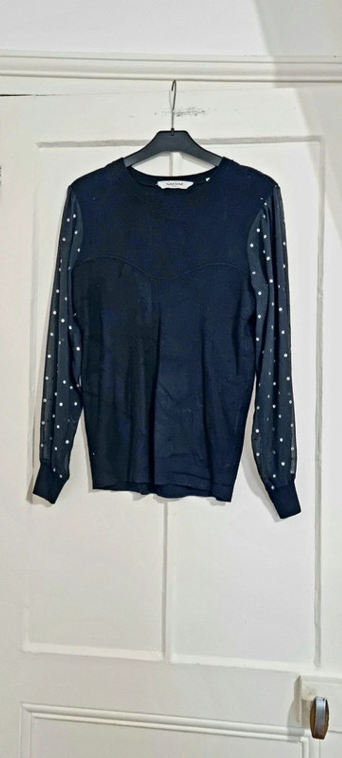Pull fin bi matière noir pois argenté M 38 naf naf - photo numéro 1