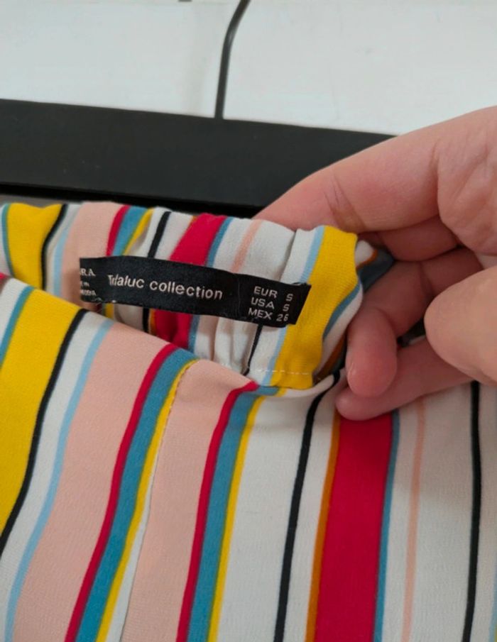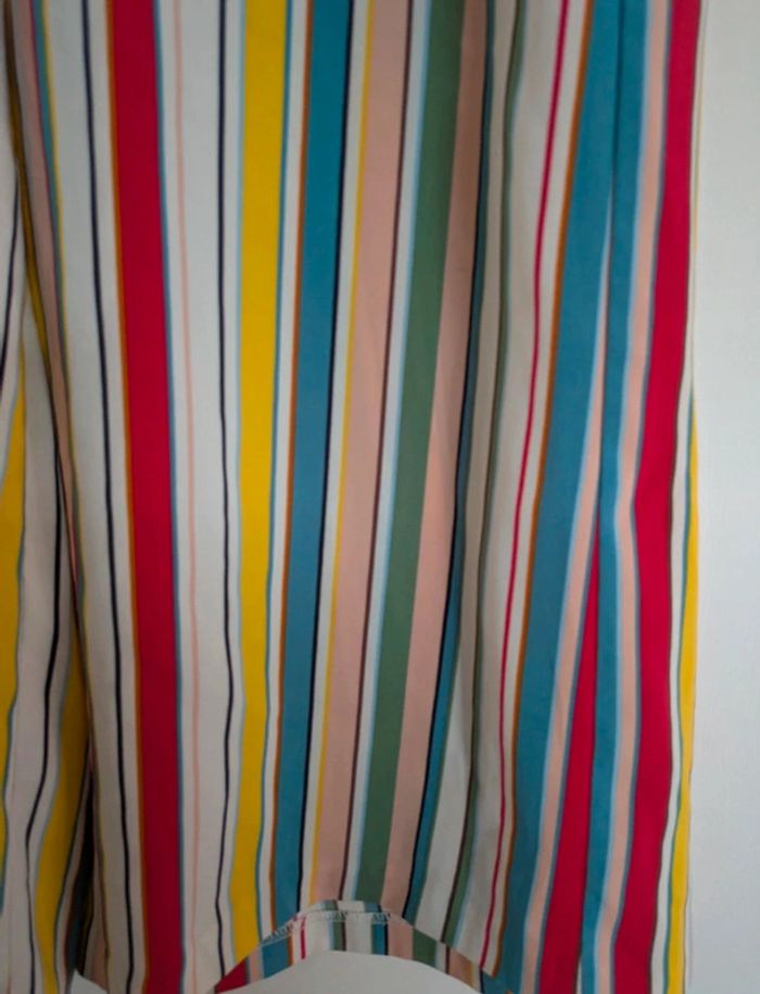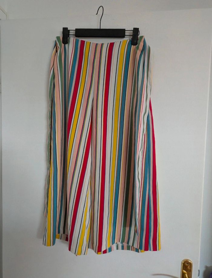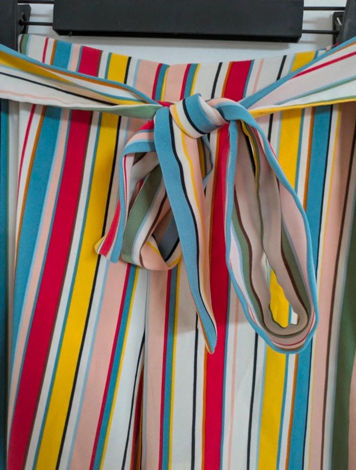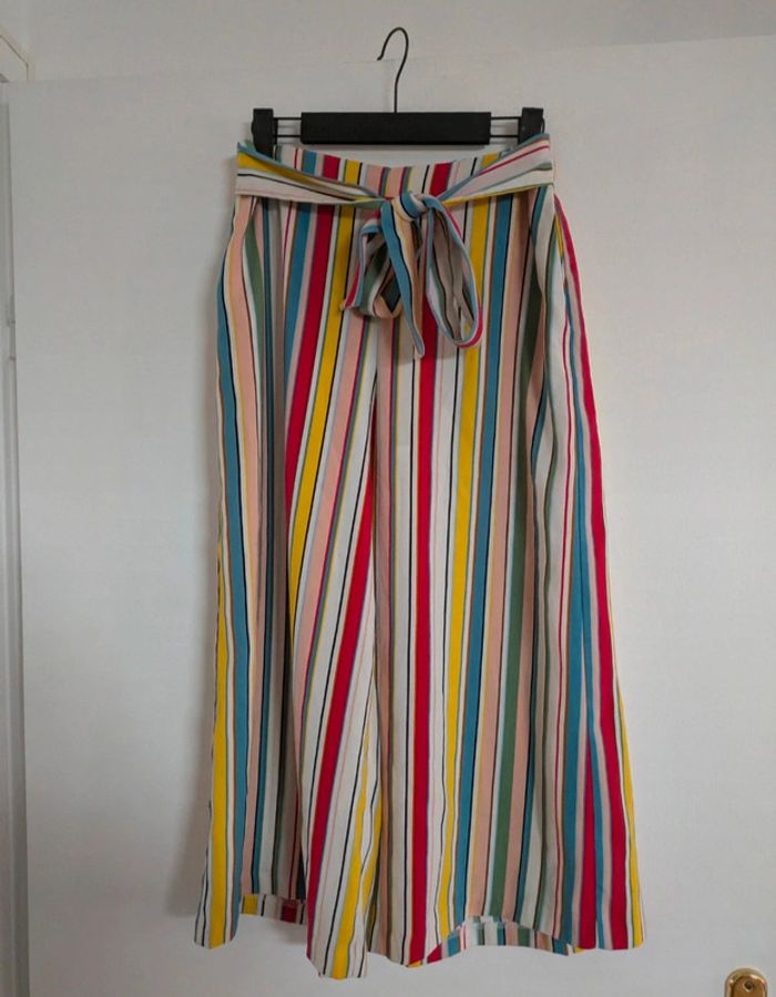 Magnifique pantalon Taille haute et élastique Large et longeur 7/8eme Imprimé rayures verticales de tailles différentes Matière fluide et touche satin Ceinture intégrée au patalon #zaraaddict #zarapantalon #zarapants