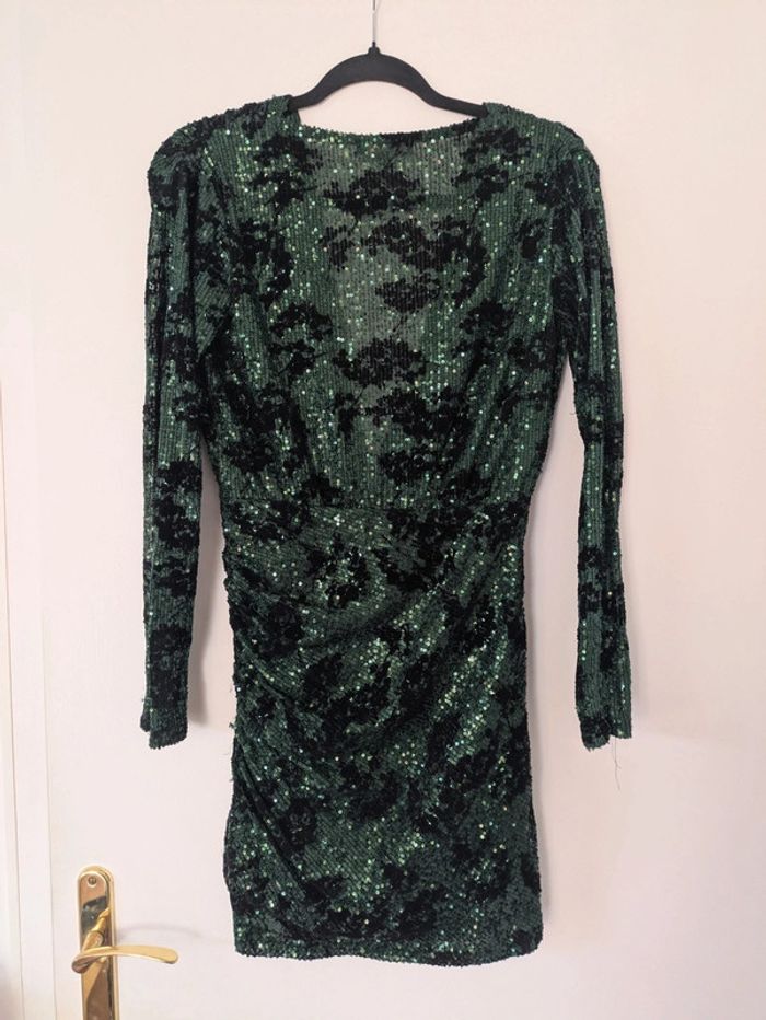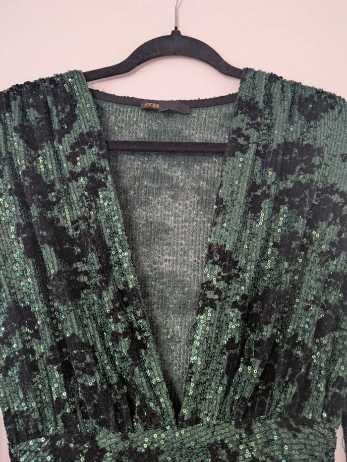 Magnifique robe en sequins Entièrement doublée donc de gratte pas Matière 100% POLYESTER sublime décolleté plongeant sur le devant et froncé au niveau de la taille donc flatte la silhouette #majeaddict #dressmaje38 #sequins #sequinsdress #sequinsdressmaje