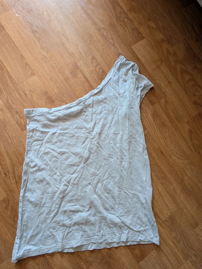 Magnifique top simple one shoulder En coton gris clair Simple mais tendance avec un petit jean ou un short Taille 2 correspond a un 36/38 #toponeshoulder #bashaddict #coton #oneshouldertop