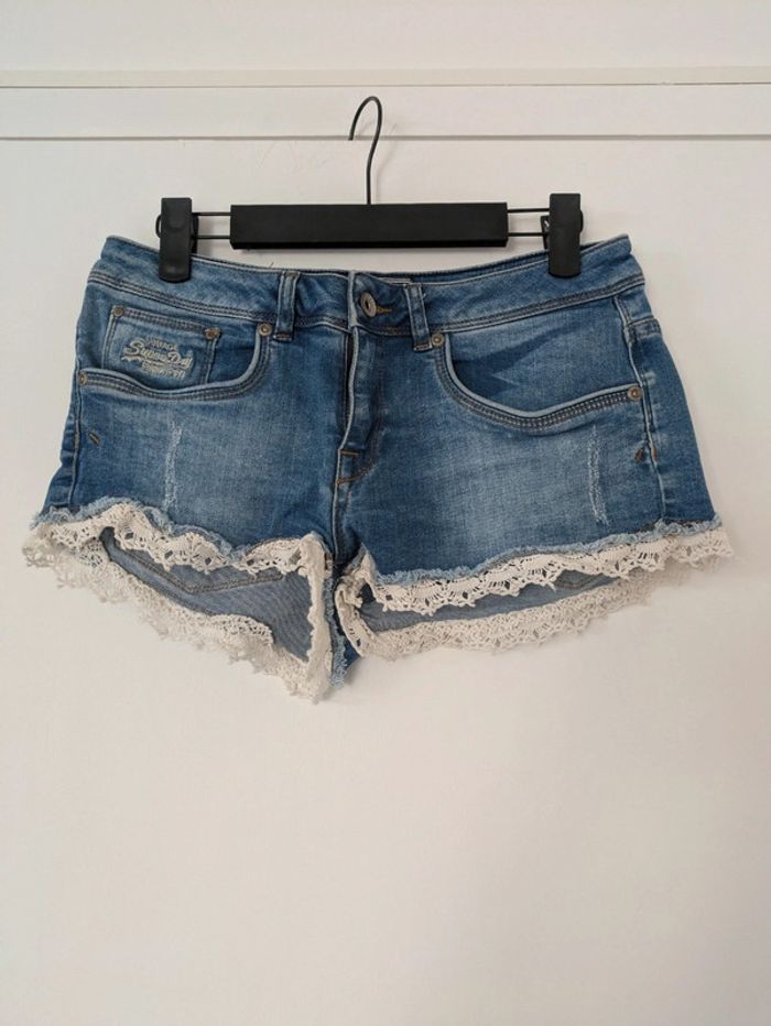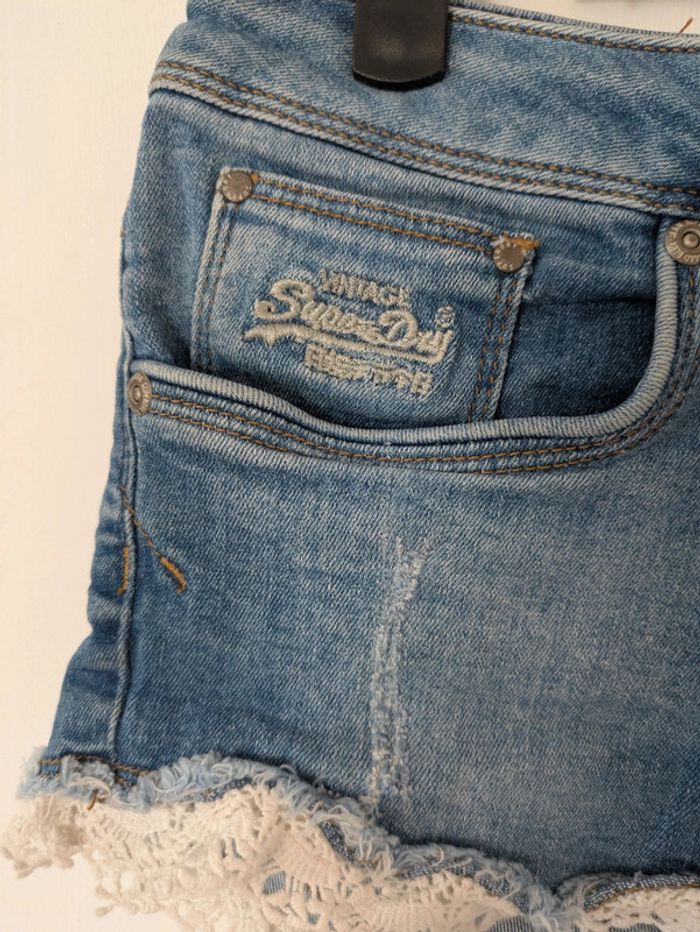 Magnifique short en denim Avec le rebord en dentelles écrues Taille 26 qui correspond a un 36 #superdry #superdryshort #shortenjean #jeanshorts