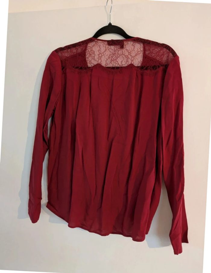 Magnifique top a manches longues Empiècement en dentelle dans le haut du dos Décolleté fermeture cache coeur Taille M Demandez pour des photos portées