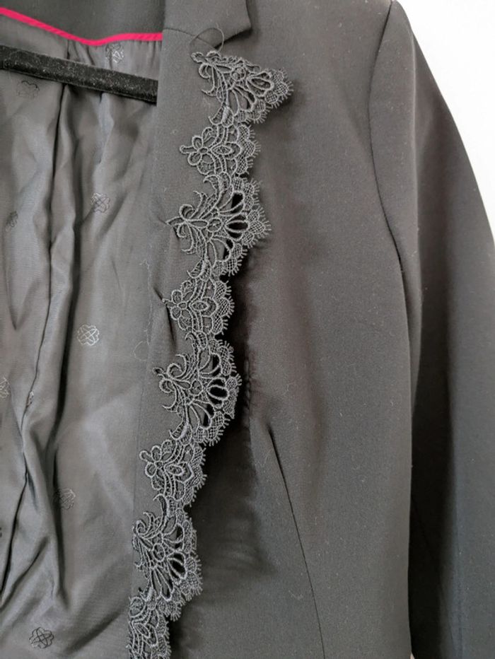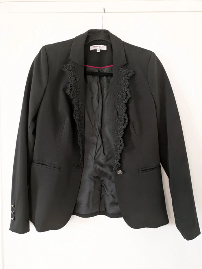 Magnifique veste blazer Légèrement cintrée Avec un col avec de la dentelle pour la petite touche d'originalité ! L'étiquette de composition a été coupée (voir photo) #blazer #morganblazer #dentelle #laceblazer