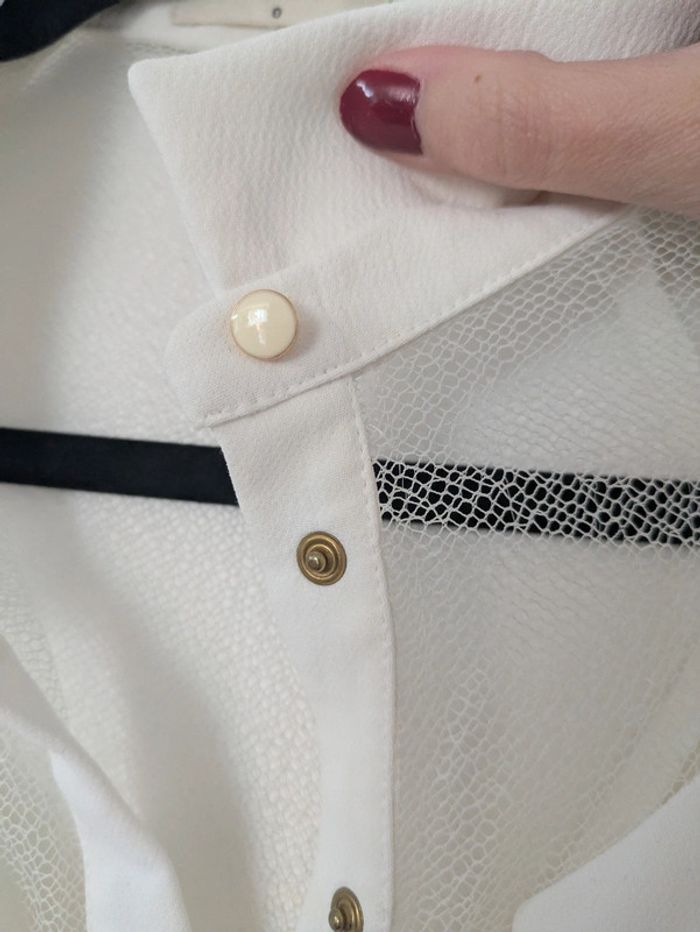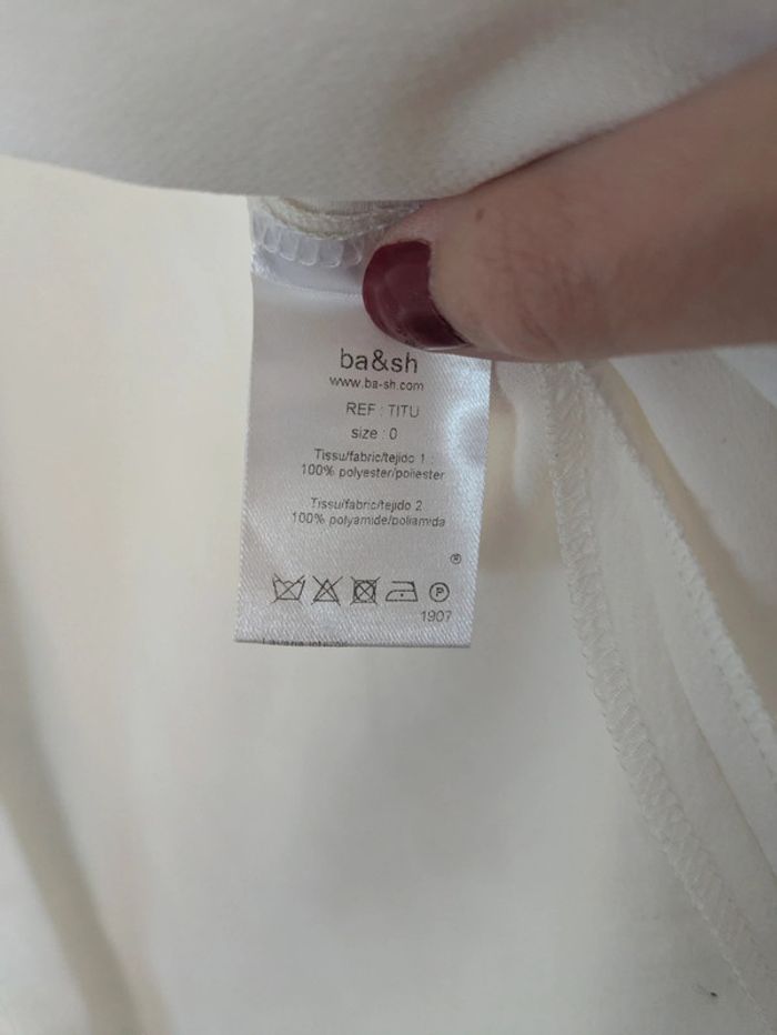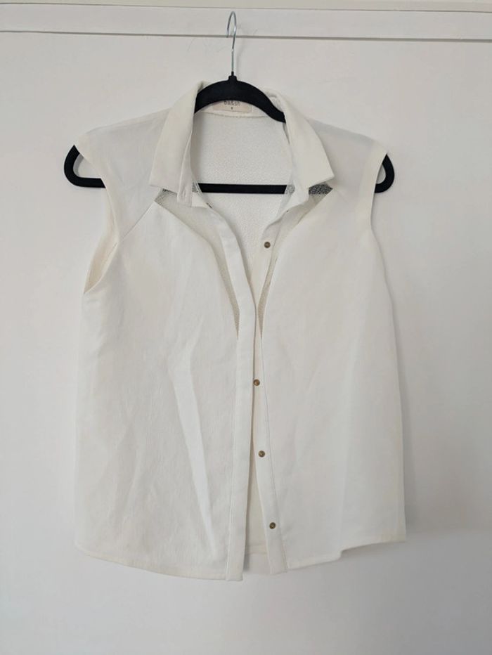 Magnifique blouse fluide Sans manches avec des empiècements dentelles fines transparentes Jolis boutons nacrés au niveau du col Taille 0 correspond a un 36 #bashaddict #bash #bashshirt