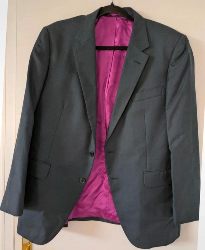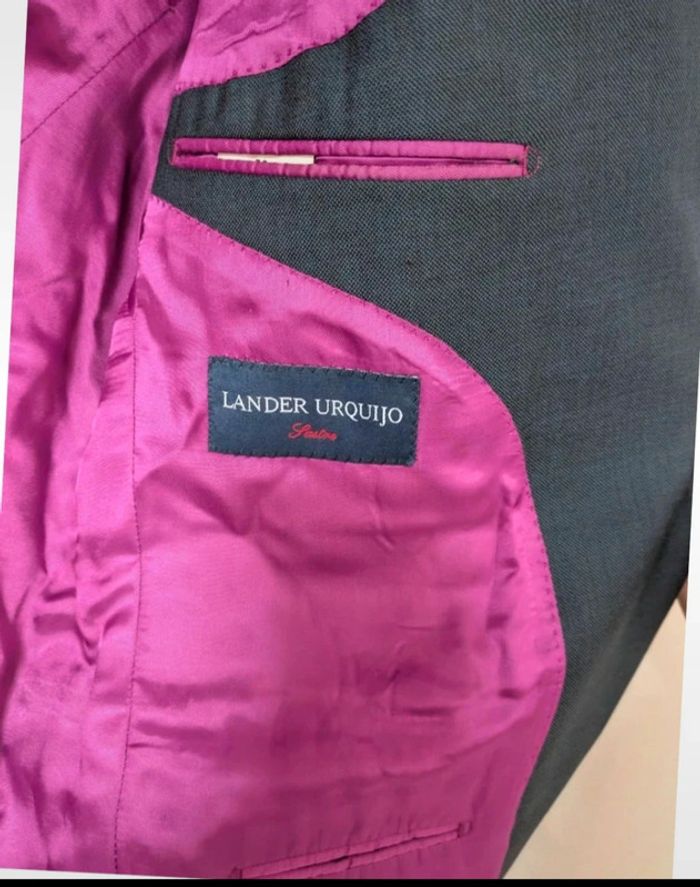 Magnifique veste de costume Coupe légèrement cintrée En laine et en cachemire Doublure satinée rose foncée Taille 56 #landerurquijo #costume #blazer #suitjacket #suits