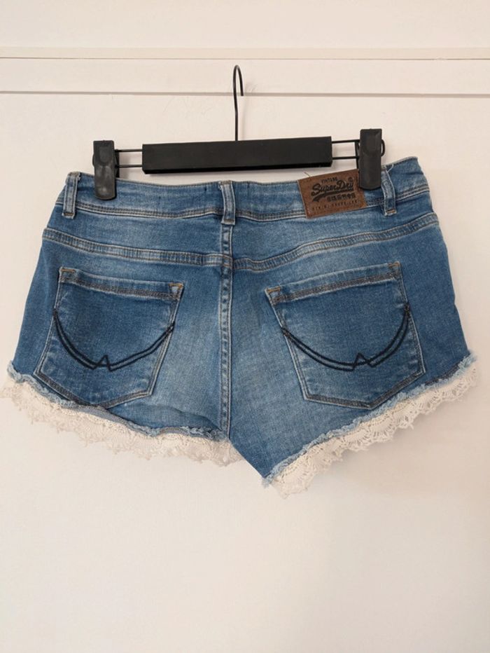 Magnifique short en denim Avec le rebord en dentelles écrues Taille 26 qui correspond a un 36 #superdry #superdryshort #shortenjean #jeanshorts