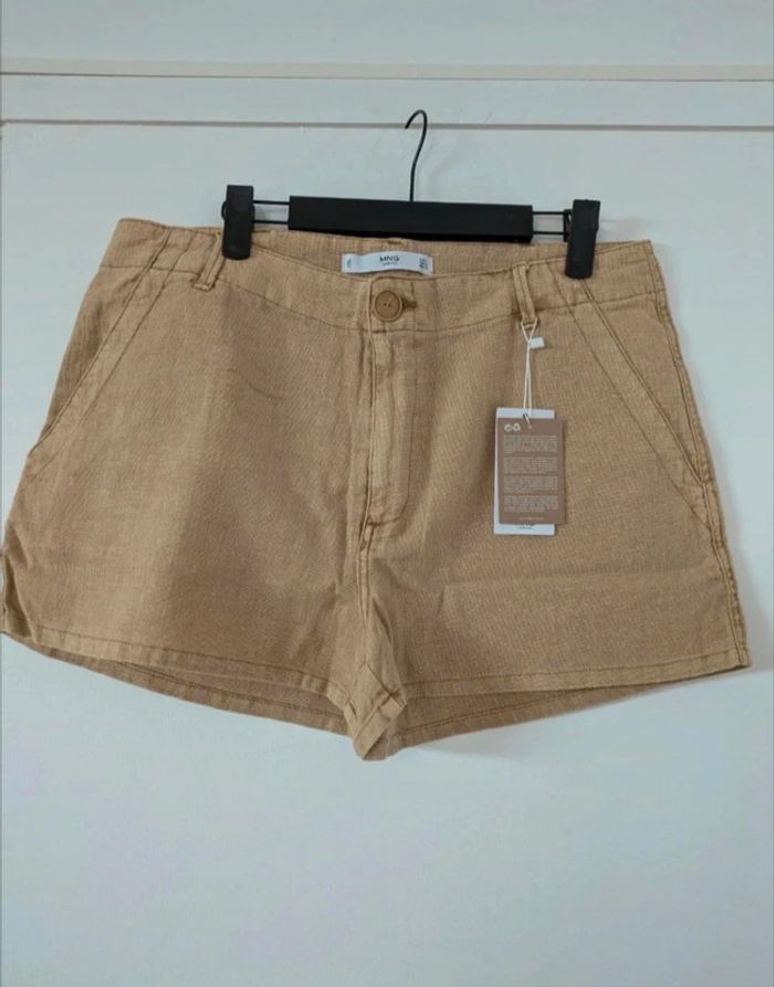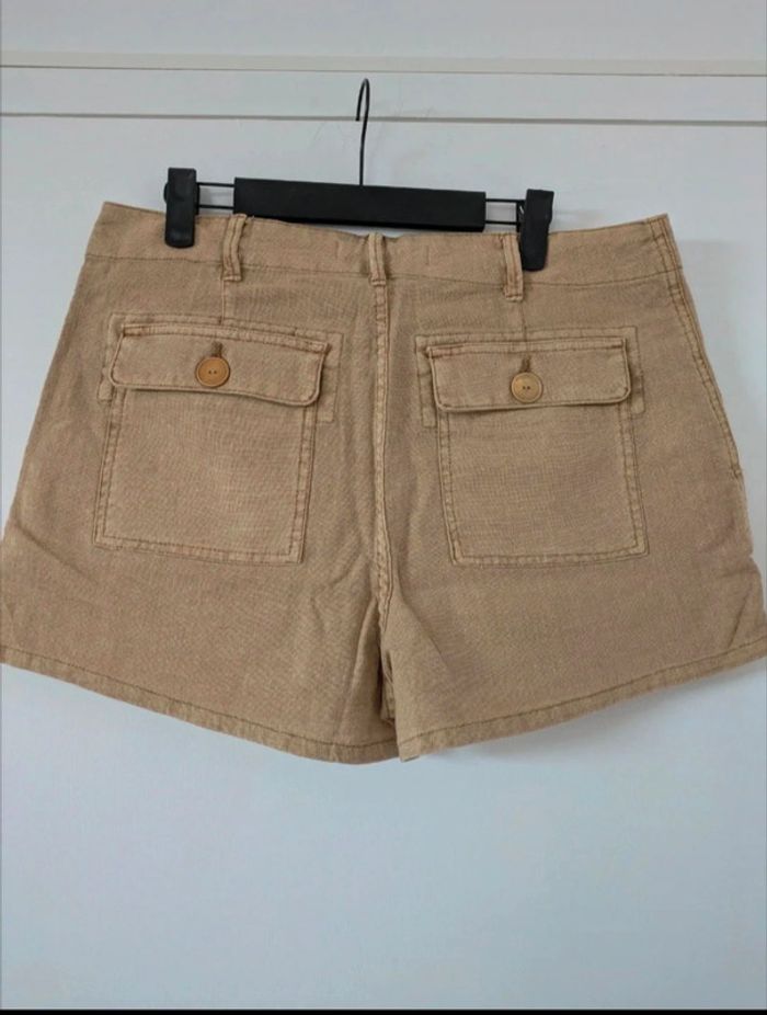 Magnifique short Taille haute Avec de jolies poches derrière. Matière principale en lin(55%), le reste en coton Parfait pour les vacances et super agréable a porter! Taille L qui correspond a une taille 40. #lin #linoshorts #linoaddict #mangoaddict #shortfemme #shortaddict