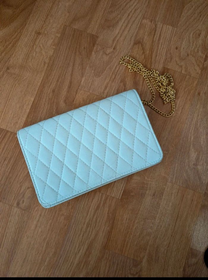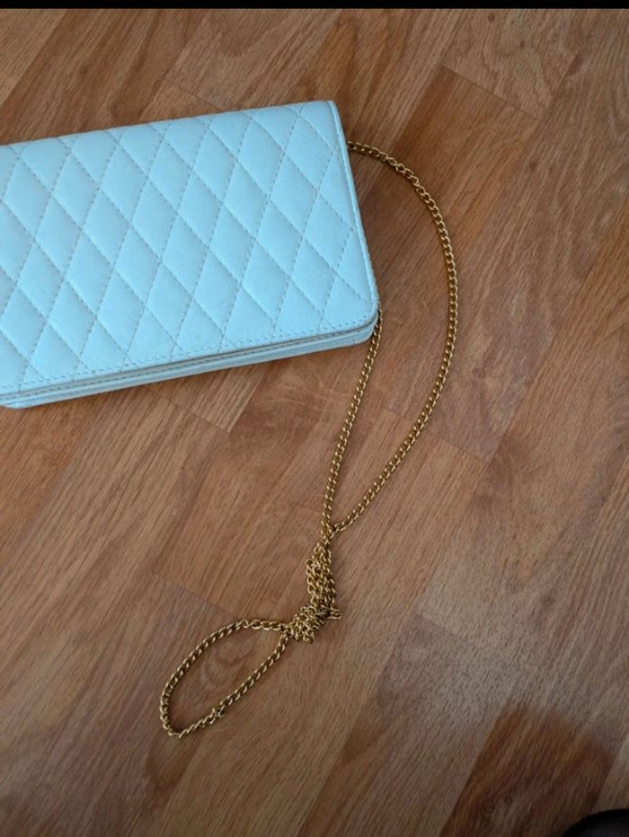 Magnifique sac pochette En cuir effet matelassé. Fermeture bouton pression Chaine fine dorée Style vintage