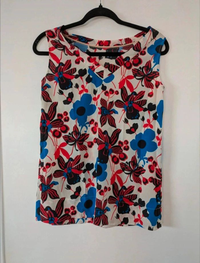 Magnifique top. Sans manches avec col peuginal Matière fluide et satinée Imprimé floral 100 % polyester #tarajarmon #tarajarmonaddict
