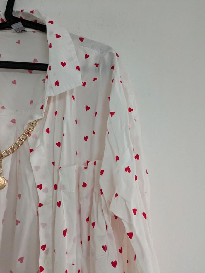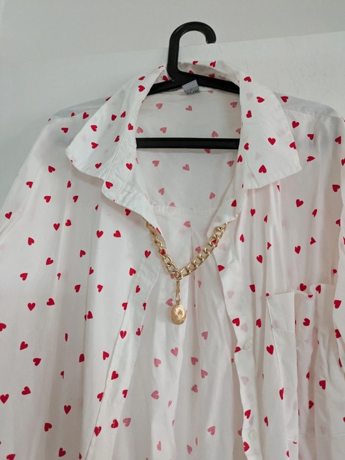Chemise oversize motif coeur rouge - photo numéro 1