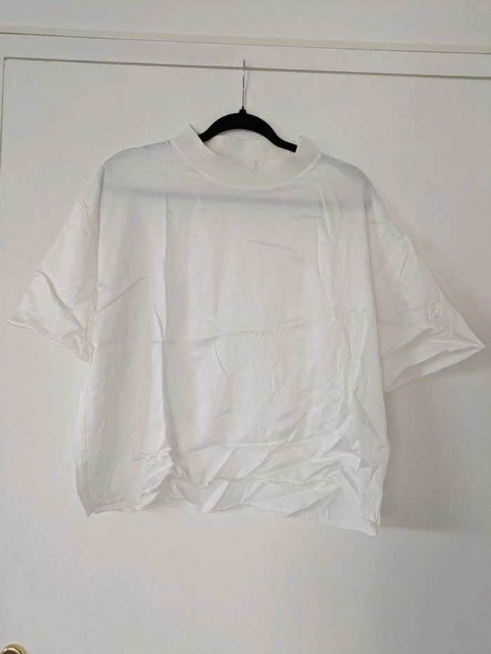 Magnifique t-shirt Matière satinée un peu nacrée Com en coton pour l'effet bimatière Coupe oversize #tshirtfemme #zaraaddict #zaratshirt