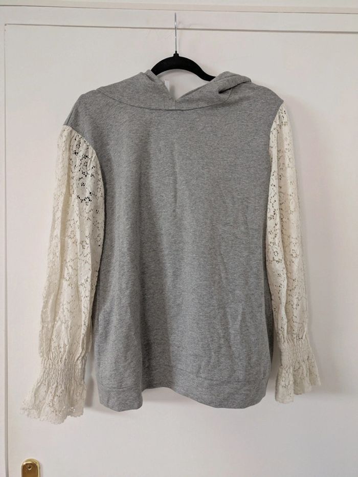 Sweat bimatiere manches dentelles et capuche - photo numéro 2