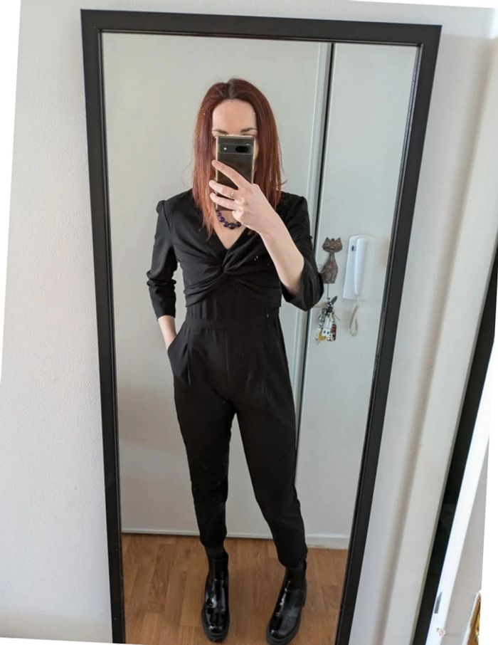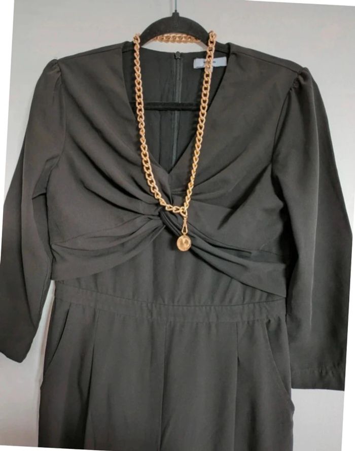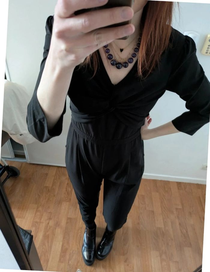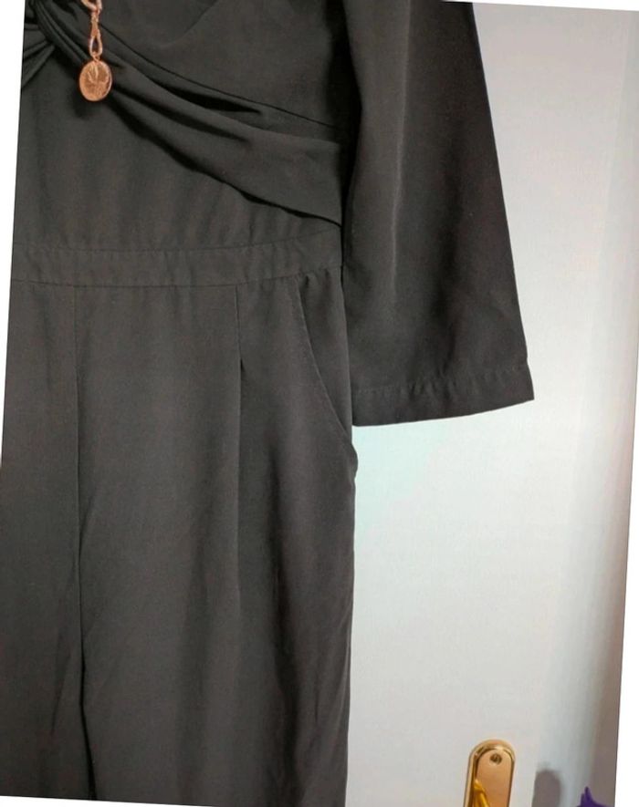 Magnifique combinaison habillée Jambes larges Manches 3/4 Joli drappé sur le devant et petit décolleté en V Fermeture éclair dans le dos avec poches au niveau des fesses Demandez pour des photos portées
