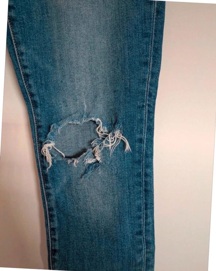 Magnifique jean Coupe slim Troué au niveau du genou gauche Denim bleu Taille 27 équivaut a une taille 36